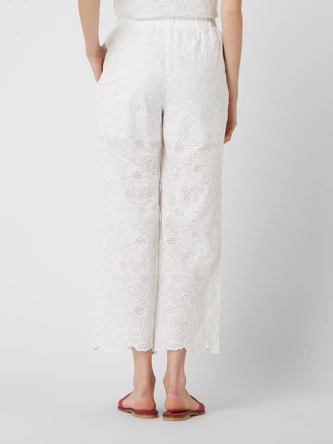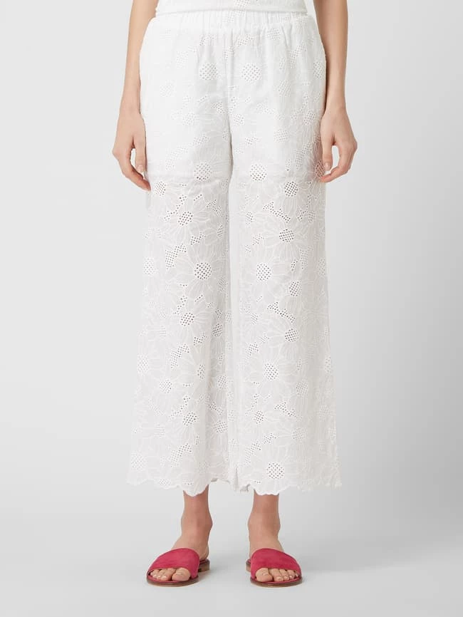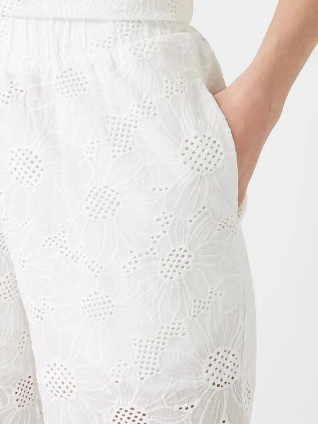 Die Culotte von APART ist aus reiner Baumwolle gefertigt. Sie zeigt sich in lockerer Passform mit Lochspitze, elastischem Bund und Muschelsaum. Warum wir Culottes lieben? Sie betonen schmale Fesseln und kaschieren kräftige Oberschenkel.