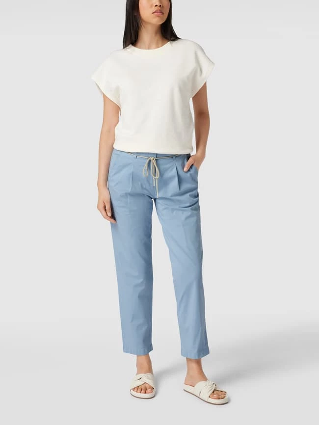 Die Chino von BRAX ist aus einem Baumwoll-Elasthan-Mix gefertigt und locker geschnitten. Sie kommt mit Gürtel zum Binden, Reißverschluss und Eingrifftaschen.