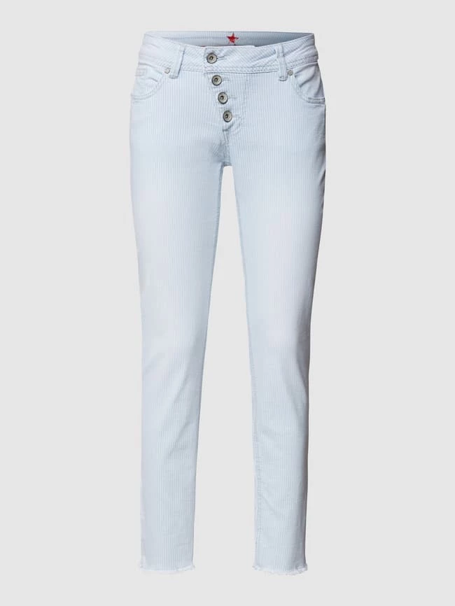 Die Hose von Buena Vista ist aus einem Baumwoll-Mix mit Stretch-Anteil gefertigt und im Slim Fit geschnitten. Sie kommt mit verkürztem Bein, asymmetrischer Knopfleiste und ausgefranstem Saum.