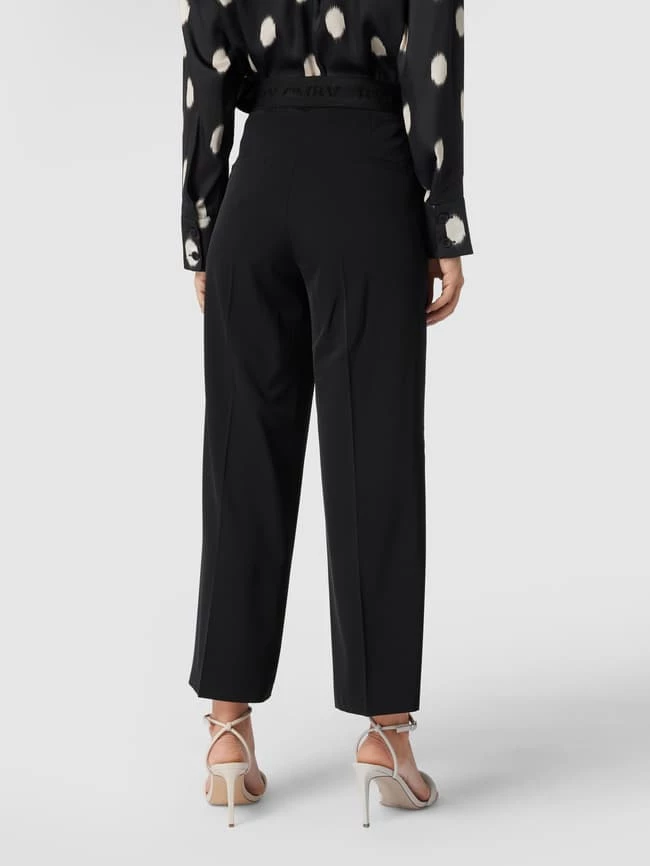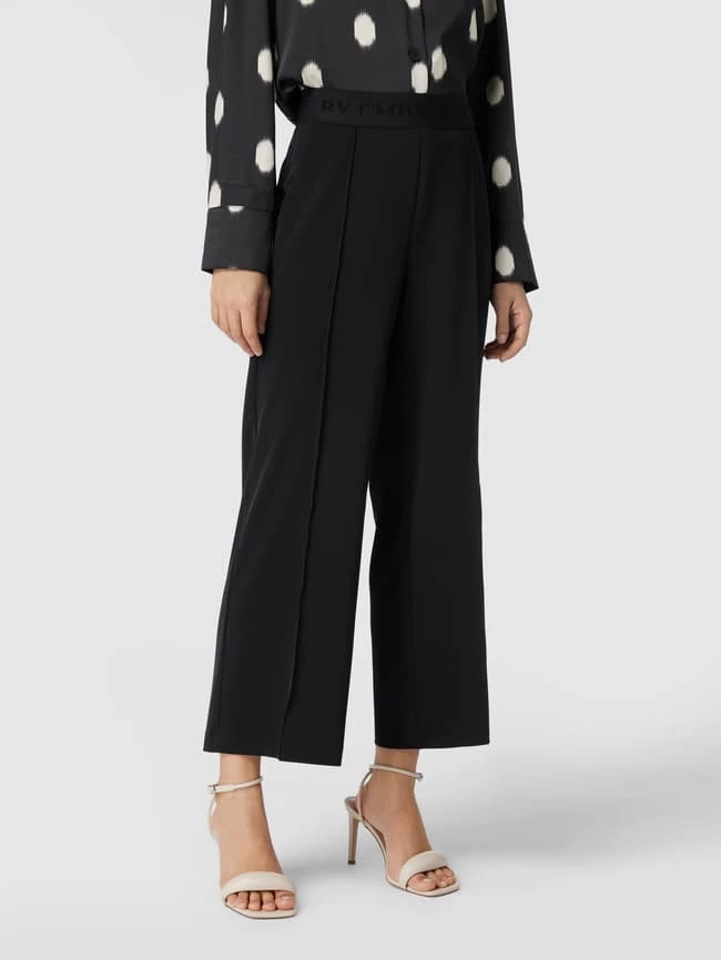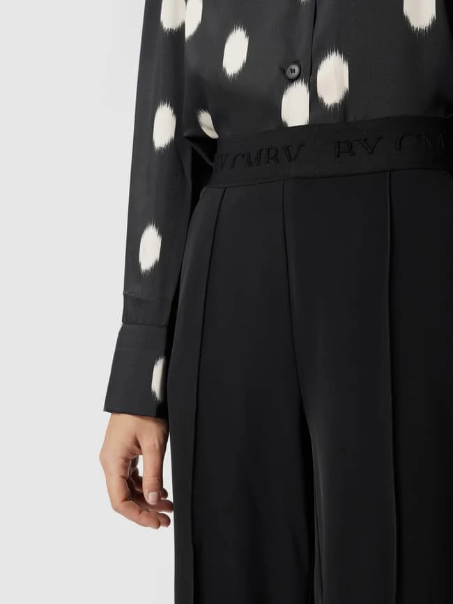 Die Bundfaltenhose von Cambio ist aus einem Material-Mix mit Stretch-Anteil gefertigt und locker geschnitten. Sie kommt mit elastischem Bund, Logo-Schriftzug und angedeuteten Leistentaschen am Gesäß.