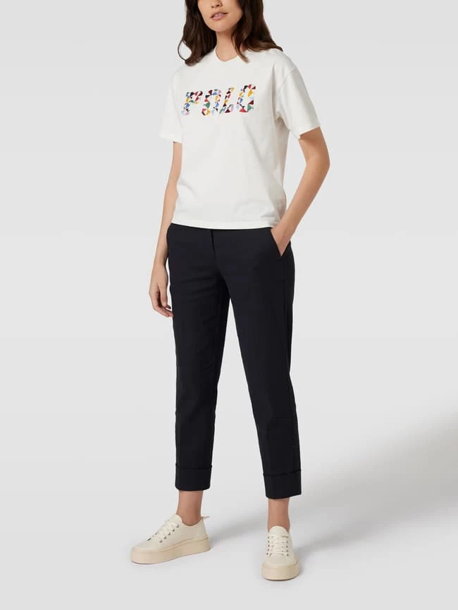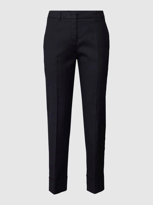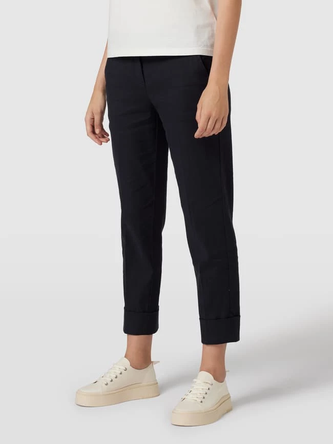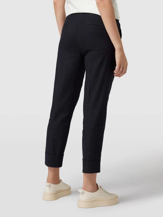Die Hose von Cambio ist aus einem Baumwoll-Mix mit Stretch-Anteil gefertigt und im Tapered Fit gehalten. Sie zeigt sich mit Bügelfalten und französischen Eingrifftaschen in 7/8-Länge.