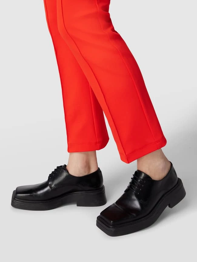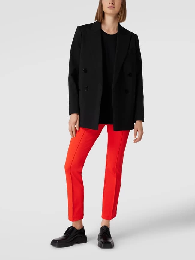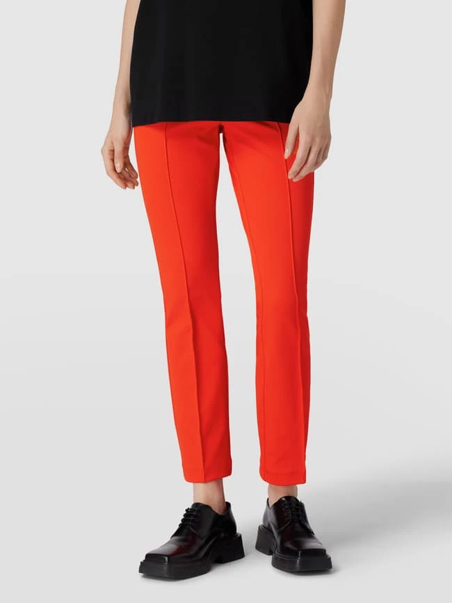 Die Stretchhose von Cambio ist aus einem elastischen Material-Mix gefertigt und im Skinny Fit gehalten. Sie zeigt sich mit verkürztem Bein, Strukturmuster und Bundfalten sowie elastischem Bund.