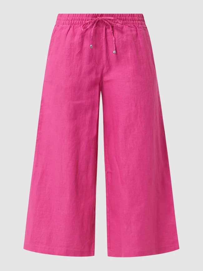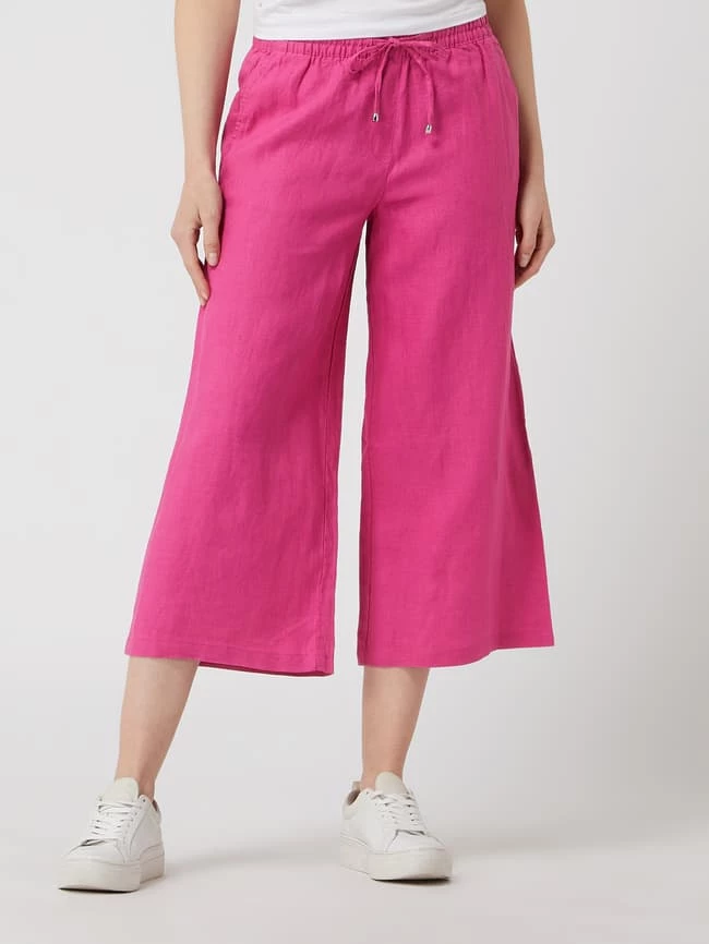 Die Culotte von Christian Berg Woman ist aus reinem Leinen gefertigt und gerade geschnitten. Sie zeigt sich in 7/8-Länge mit elastischem Bund und Eingrifftaschen. Warum wir Culottes lieben? Sie betonen schmale Fesseln und kaschieren kräftige Oberschenkel.