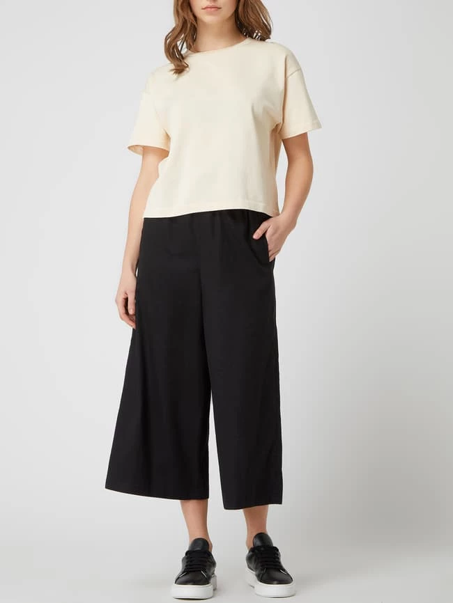 Die Culotte von DRYKORN ist aus einer Leinenmischung mit Baumwoll- und Stretch-Anteil gefertigt. Sie zeigt sich in 7/8-Länge mit weit ausgestelltem Bein und elastischem Bund. Warum wir diese Passform mögen? Sie betont schmale Fesseln und schmeichelt Frauen mit kräftigeren Oberschenkeln.