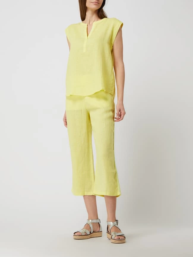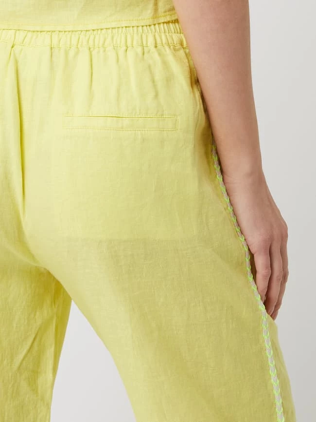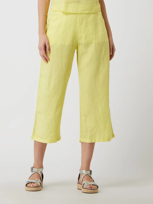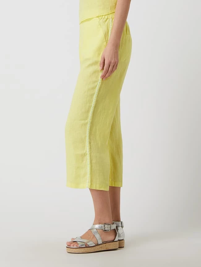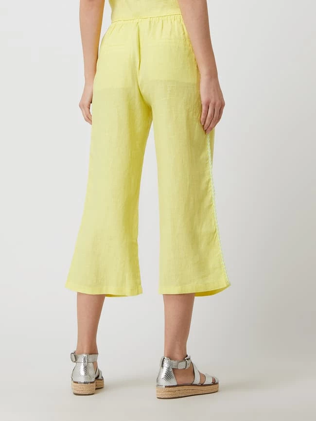 Die Culotte von Emily Van den Bergh ist aus reinem Leinen gefertigt. Sie kommt in weiter Passform mit verkürztem Bein, elastischem Bund und seitlichen Zierstreifen. Warum wir Culottes lieben? Sie betonen schmale Fesseln und kaschieren kräftige Oberschenkel.