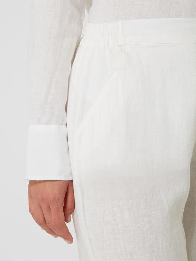 Die Culotte von Emily Van den Bergh ist aus reinem Leinen gefertigt. Sie kommt mit weitem Bein, elastischem Einsatz am Bund und französischen Eingrifftaschen. Warum wir Culottes lieben? Sie betonen schmale Fesseln und kaschieren kräftige Oberschenkel.