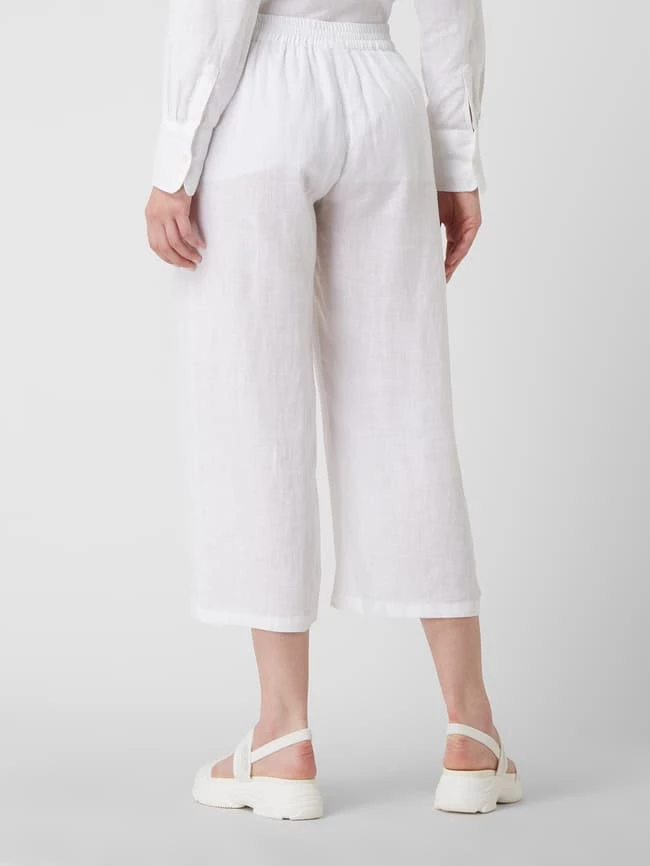 Die Culotte von Emily Van den Bergh ist aus reinem Leinen gefertigt. Sie kommt mit weitem Bein, elastischem Einsatz am Bund und französischen Eingrifftaschen. Warum wir Culottes lieben? Sie betonen schmale Fesseln und kaschieren kräftige Oberschenkel.