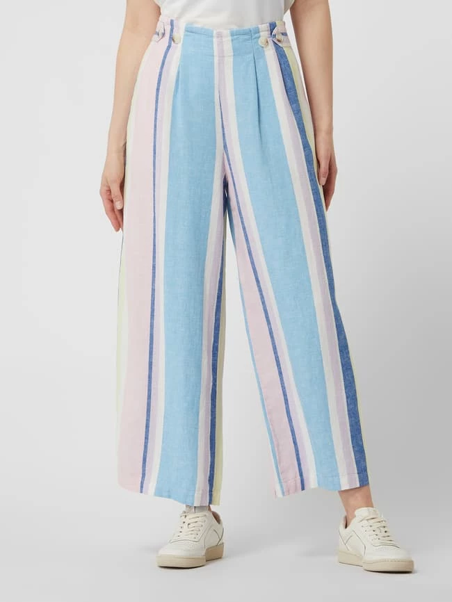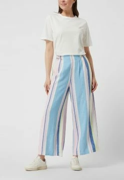 Die Culotte von Esprit ist aus einem Leinen-Viskose-Mix gefertigt und weit geschnitten. Sie kommt mit Streifenmuster, elastischem Bund und Knopfriegeln. Warum wir Culottes lieben? Sie betonen schmale Fesseln und kaschieren kräftige Oberschenkel.