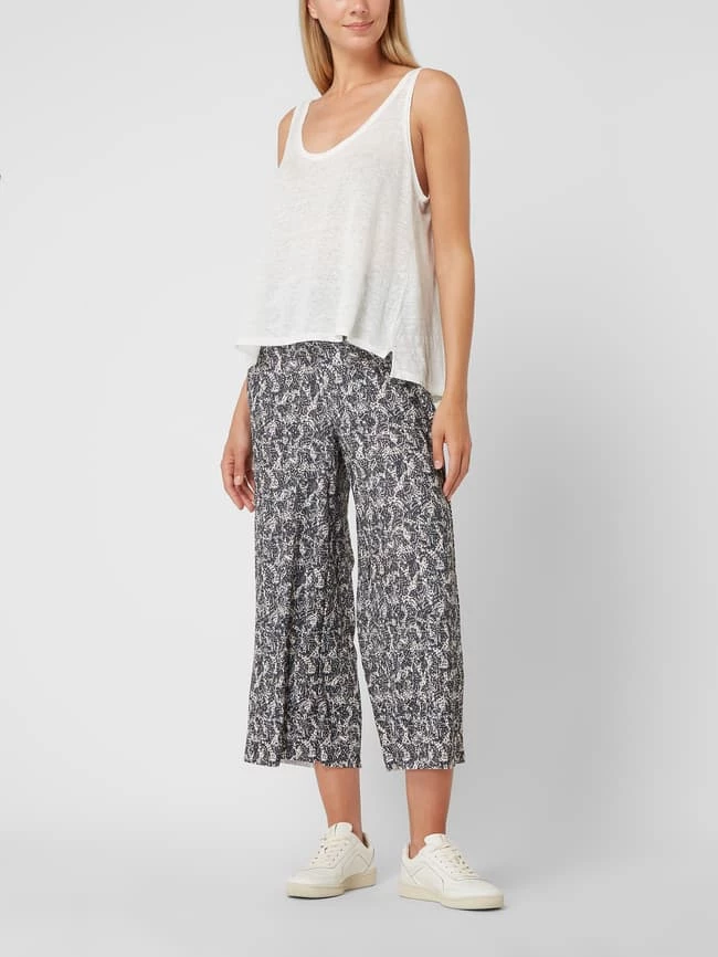Die Culotte von Esprit ist aus leichtem Material gefertigt. Sie kommt mit weitem Bein, Allover-Muster und fixiertem Gürtel zum Binden. Warum wir Culottes lieben? Sie betonen schmale Fesseln und kaschieren kräftige Oberschenkel.