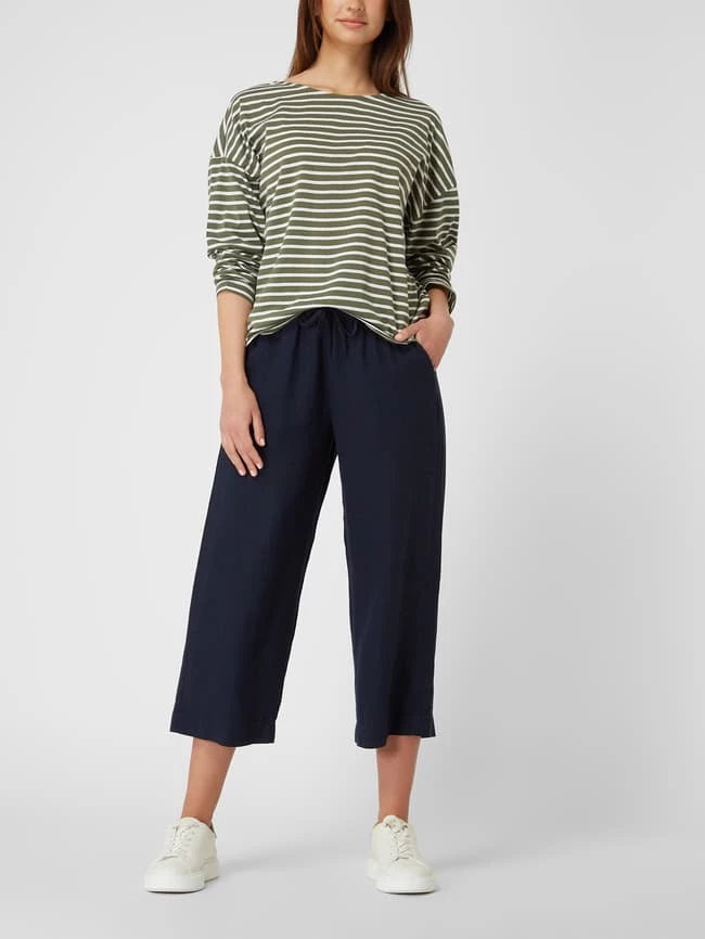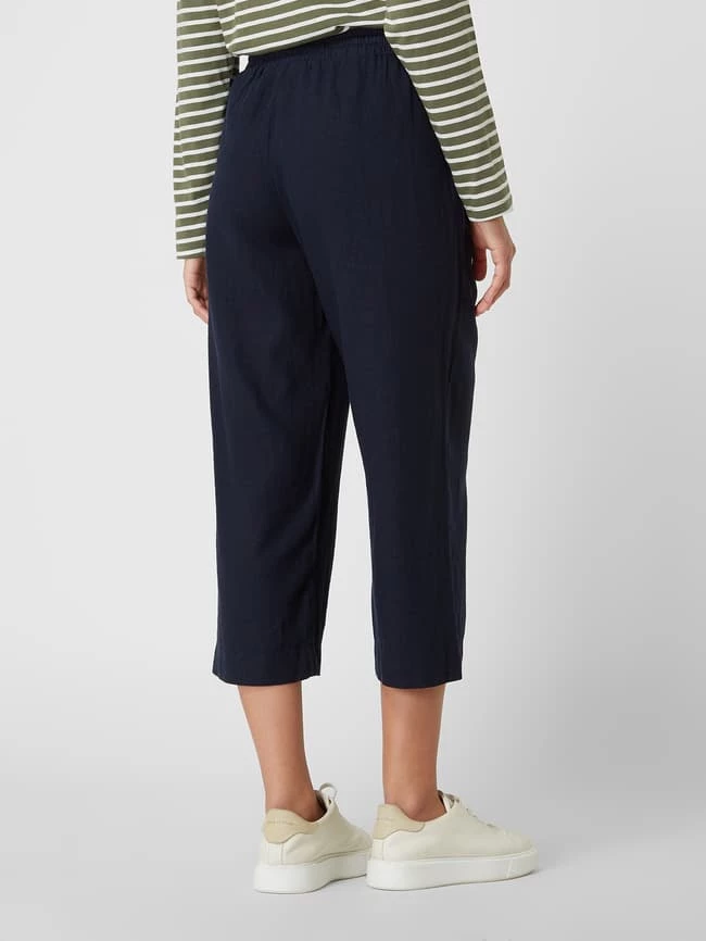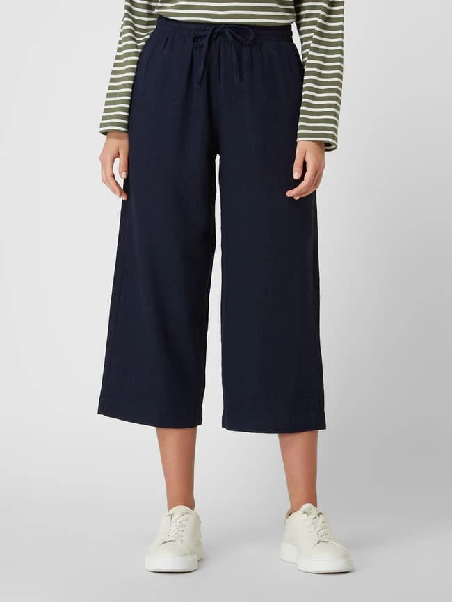 Die Hose von FREE/QUENT ist aus einem Flachs-Baumwoll-Mix gefertigt und weit geschnitten. Sie kommt in 7/8-Länge mit französischen Eingrifftaschen und elastischem Bund mit Tunnelzug.