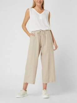 Die Hose von FREE/QUENT ist aus einem Flachs-Baumwoll-Mix gefertigt und weit geschnitten. Sie kommt in 7/8-Länge mit französischen Eingrifftaschen und elastischem Bund mit Tunnelzug.