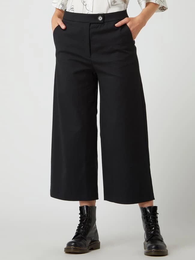 Die Culotte von Karo Kauer x P&C ist aus fein strukturiertem Material gefertigt. Sie kommt mit weitem, verkürztem Bein, Reißverschluss und französischen Eingrifftaschen. Das Modell ist exklusiv bei uns erhältlich.