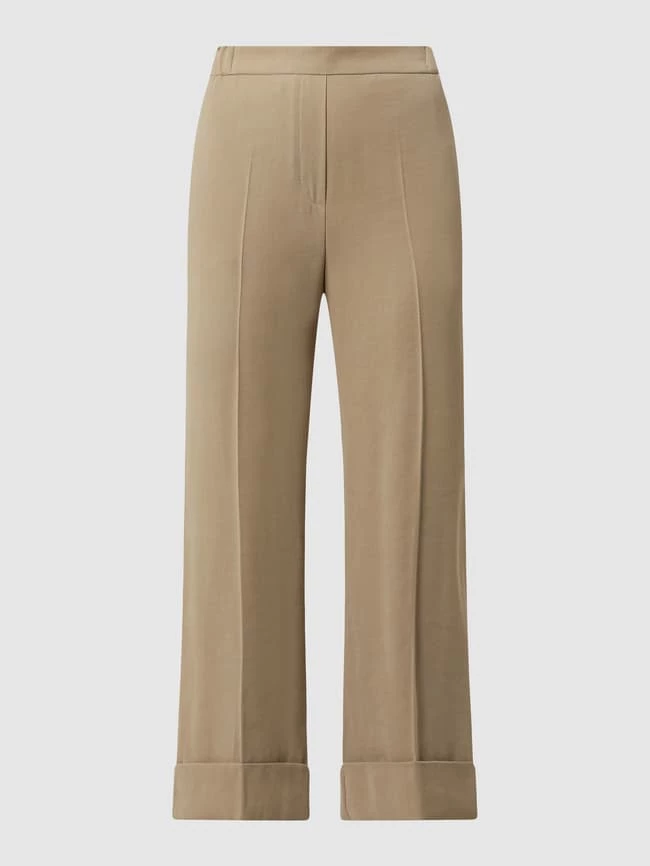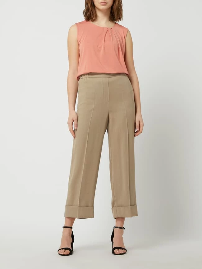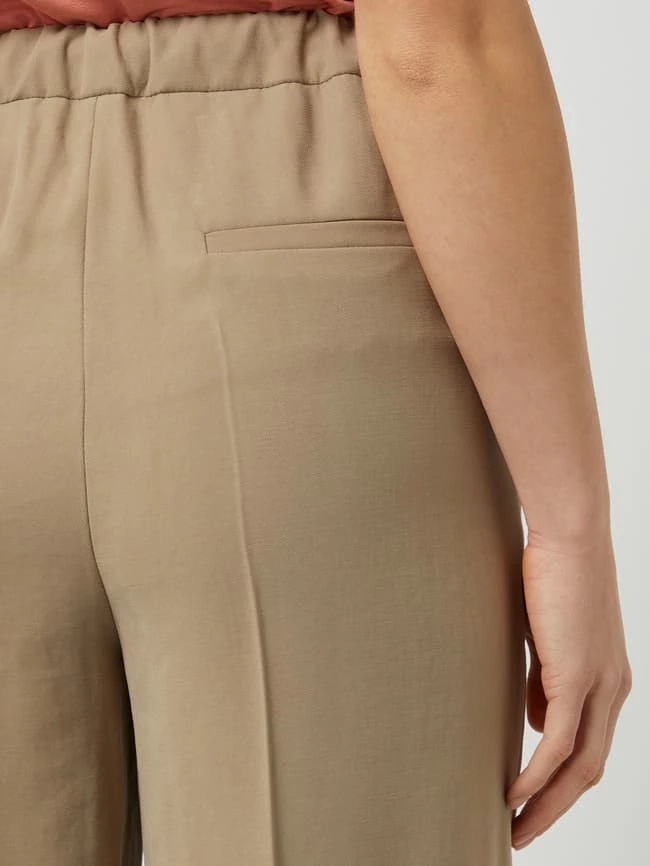 Die Culotte von Jake*s Collection ist aus einer Viskosemischung gefertigt. Sie kommt mit weitem, verkürztem Bein, elastischem Bund und Bügelfalten. Warum wir Culottes lieben? Sie betonen schmale Fesseln und kaschieren kräftige Oberschenkel.