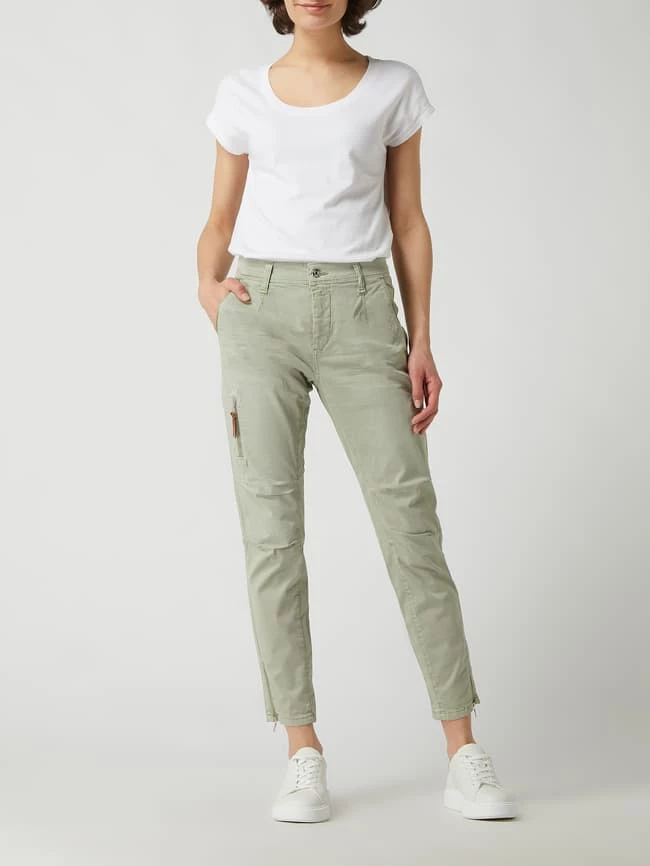 Die Cargohose von MAC ist aus einem Baumwoll-Elasthan-Mix gefertigt und schmal geschnitten. Sie kommt in 7/8-Länge mit Reißverschlusstasche und Reißverschluss an den Beinabschlüssen. Warum wir diese Passform mögen? Sie unterstreicht eine zierliche Silhouette.