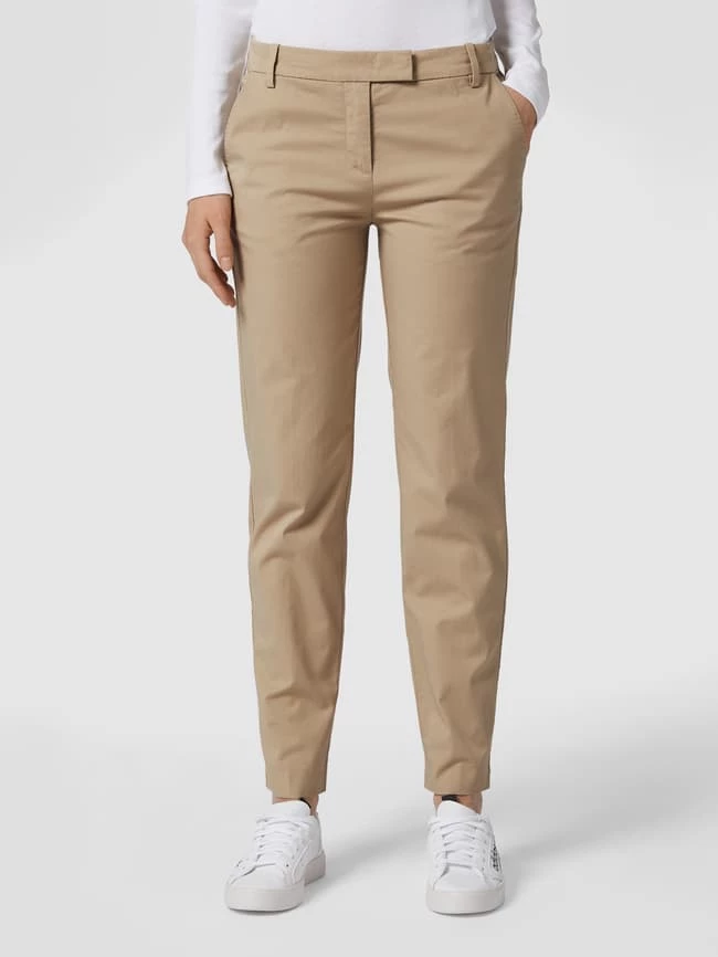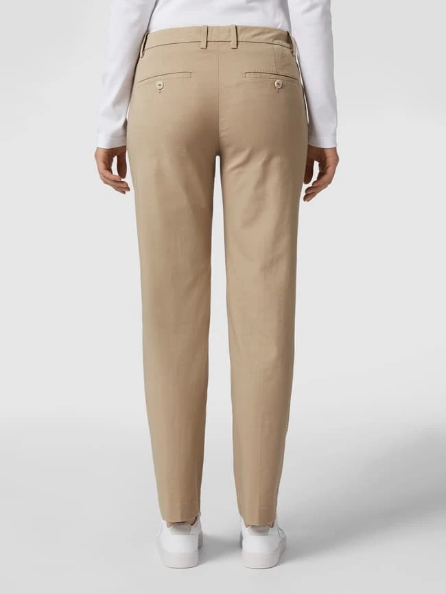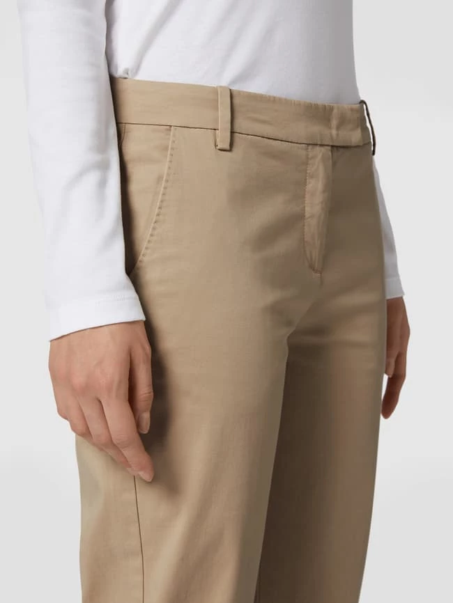 Die Chino von MARC O’POLO ist aus Baumwolle mit Stretch-Anteil gefertigt. Sie kommt in verkürzter Passform mit französischen Eingrifftaschen.
