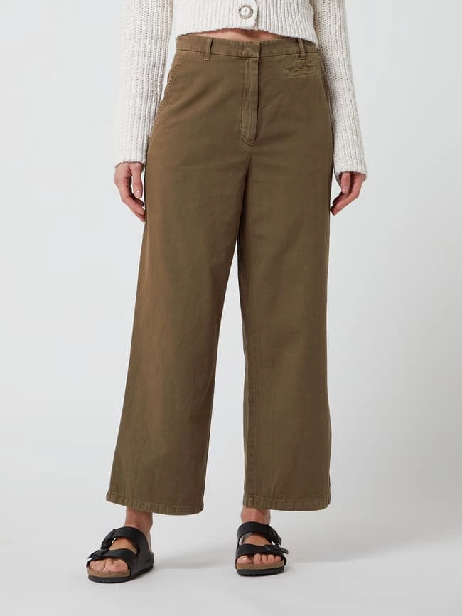 Die Culotte von MARC O’POLO ist aus einer Bio-Baumwollmischung mit Leinen-Anteil gefertigt. Sie kommt mit Münztasche, seitlichen Eingrifftaschen und geknöpften Paspeltaschen am Gesäß. Warum wir Culottes lieben? Sie betonen schmale Fesseln und kaschieren kräftige Oberschenkel.