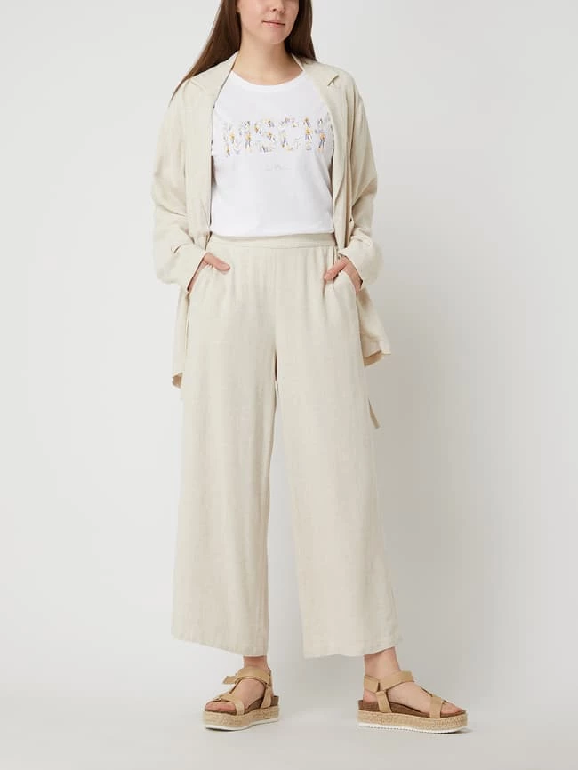 Die Culotte von Moss Copenhagen ist aus einem Viskose-Leinen-Mix gefertigt und verkürzt geschnitten. Sie kommt mit weitem Bein, elastischem Bund und französischen Eingrifftaschen. Warum wir Culottes lieben? Sie betonen schmale Fesseln und kaschieren kräftige Oberschenkel.