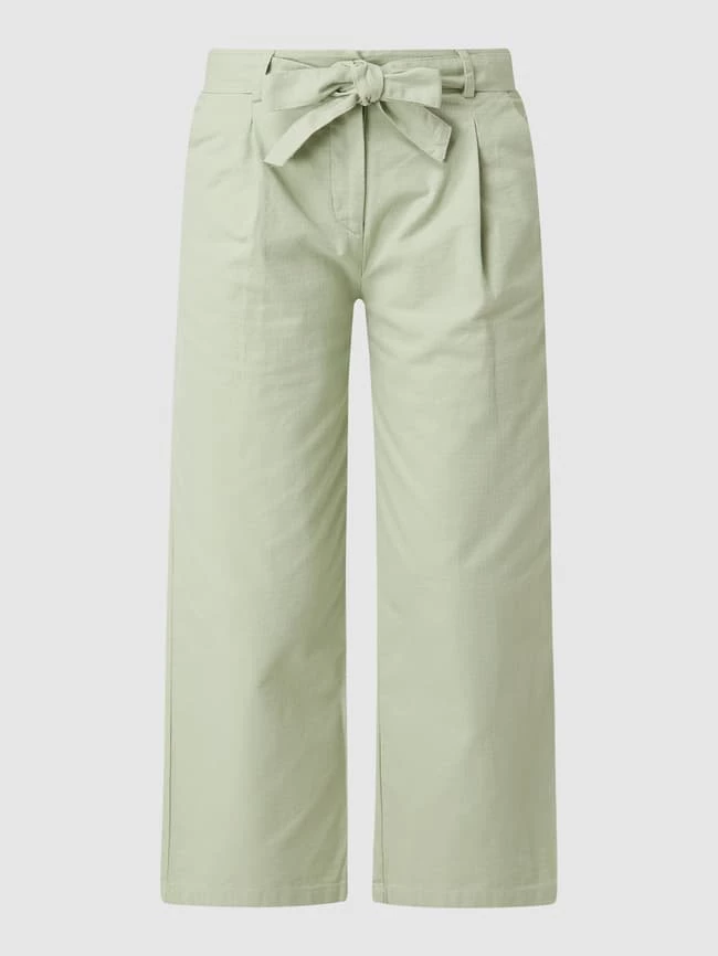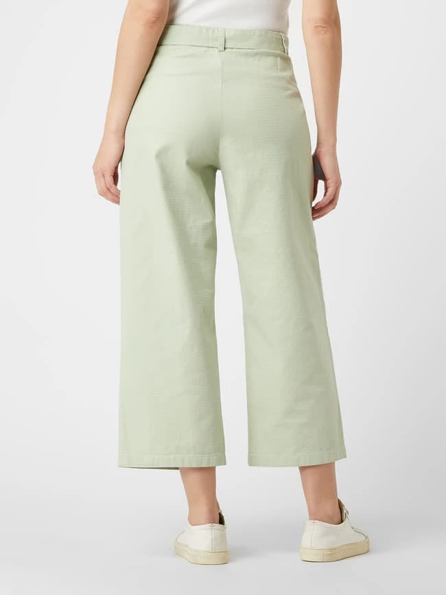 Die Culotte von OPUS ist aus einem Baumwoll-Elasthan-Mix gefertigt und weit geschnitten. Sie kommt mit fixiertem Gürtel zum Binden, Reißverschluss und Bundfalten. Warum wir Culottes lieben? Sie betonen schmale Fesseln und kaschieren kräftige Oberschenkel.