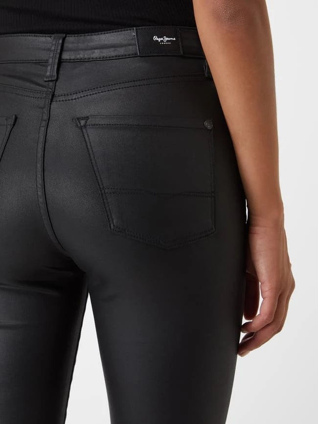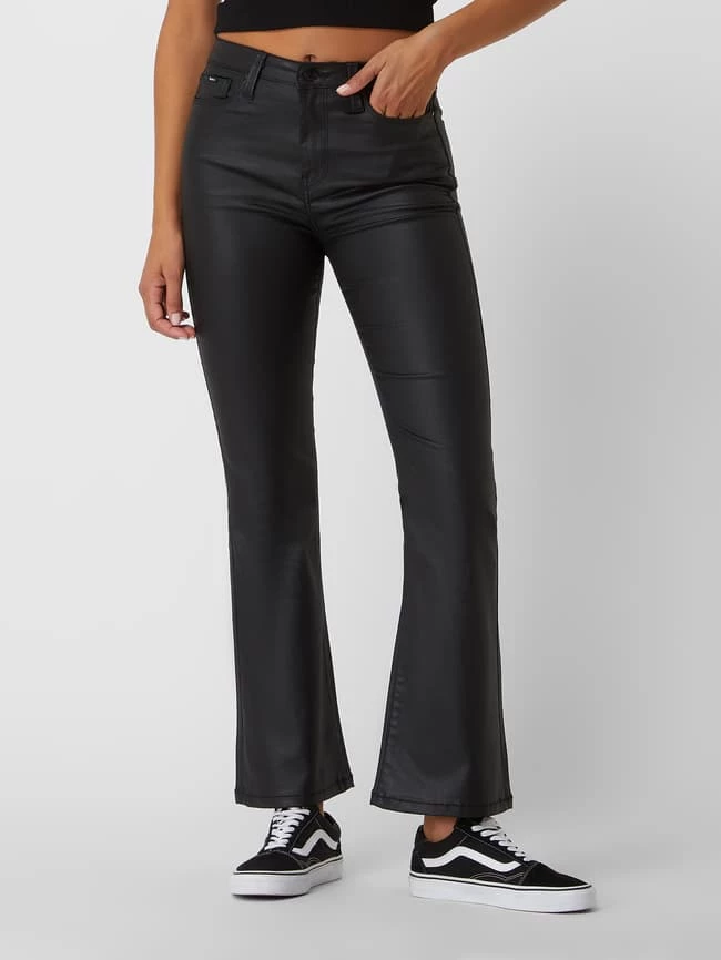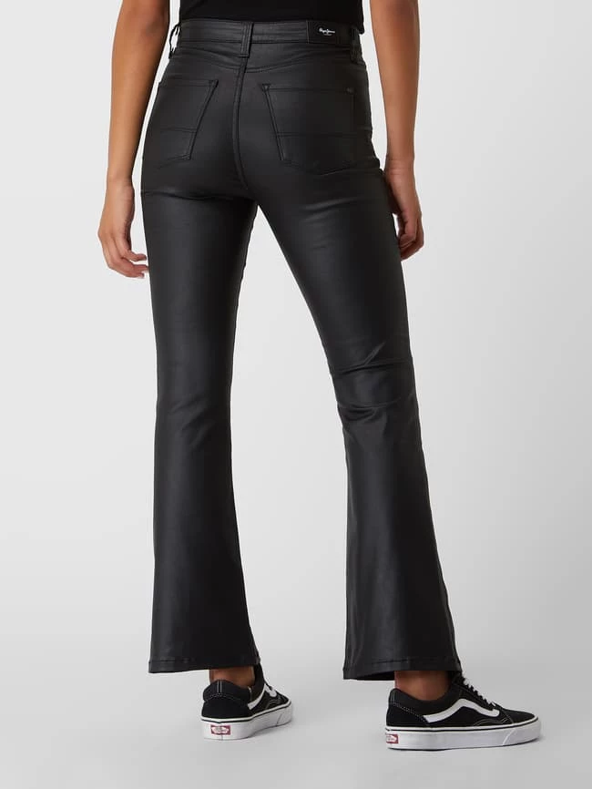 Die Hose von Pepe Jeans ist aus einer Modalmischung mit Stretch-Anteil gefertigt. Sie kommt in Leder-Optik mit ausgestelltem Bein, hohem Bund und Eingrifftaschen. Warum wir diese Passform mögen? Sie betont die Oberschenkel und streckt das Bein.