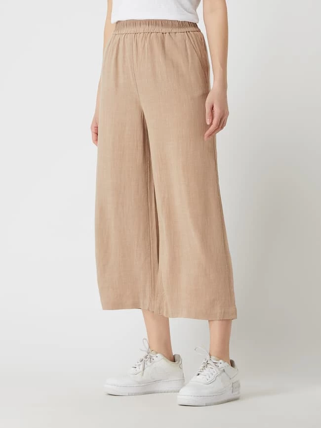 Die Culotte von PIECES ist aus einem Viskose-Leinen-Mix gefertigt. Sie kommt mit weitem Bein, elastischem Bund und Eingrifftaschen. Warum wir Culottes lieben? Sie betonen schmale Fesseln und kaschieren kräftige Oberschenkel.