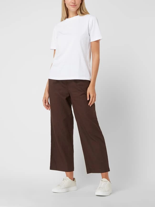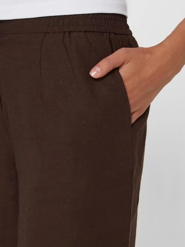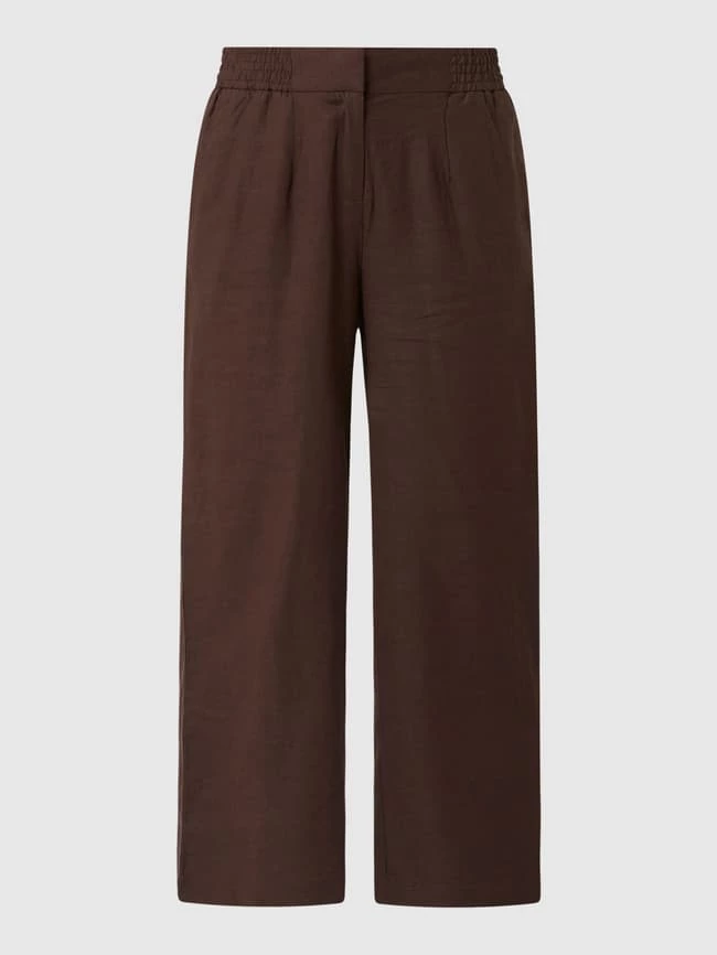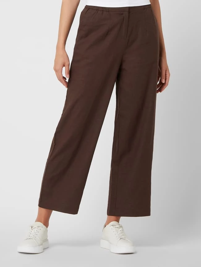 Die Culotte von re.draft ist aus einem Leinen-Viskose-Mix gefertigt. Sie kommt mit weitem Bein, Hakenverschluss und französischen Eingrifftaschen. Warum wir Culottes lieben? Sie betonen schmale Fesseln und kaschieren kräftige Oberschenkel.