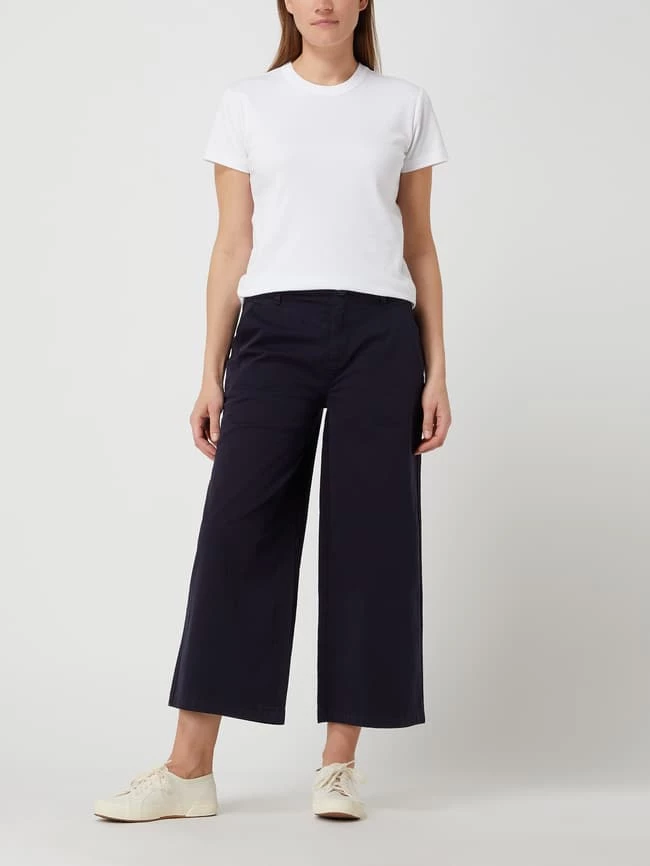 Die Culotte von s.Oliver RED LABEL ist aus einem Baumwoll-Elasthan-Mix gefertigt. Sie kommt mit weitem Bein, Reißverschluss und Eingrifftaschen. Warum wir Culottes lieben? Sie betonen schmale Fesseln und kaschieren kräftige Oberschenkel.