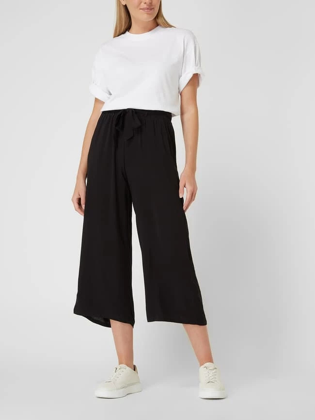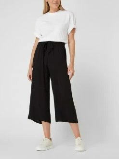 Die Culotte von soyaconcept ist aus reiner Viskose gefertigt und weit geschnitten. Sie kommt mit elastischem Bund, fixiertem Gürtel zum Binden und französischen Eingrifftaschen. Warum wir Culottes lieben? Sie betonen schmale Fesseln und kaschieren kräftige Oberschenkel.