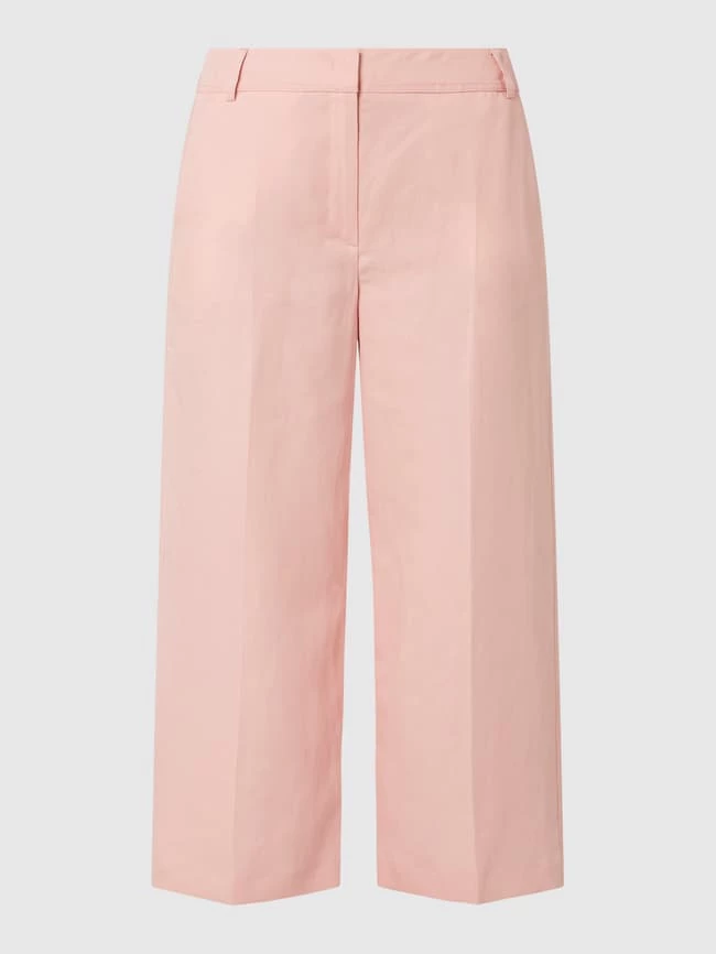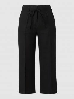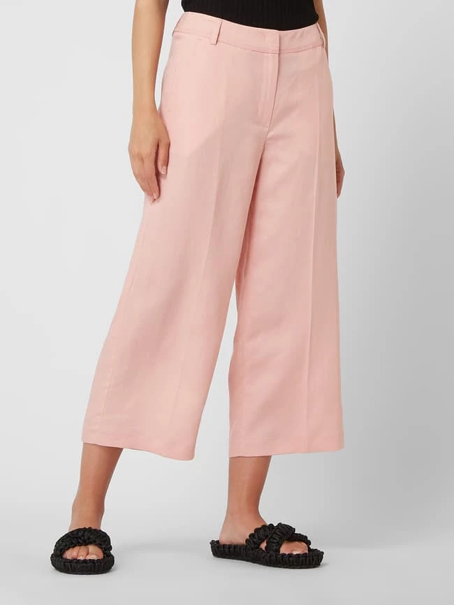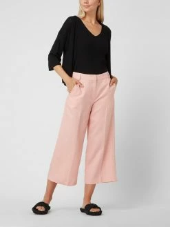 Die Culotte von TAIFUN ist aus einem Lyocell-Leinen-Mix gefertigt. Sie kommt in lockerer Passform mit weit geschnittenem Bein, französischen Eingrifftaschen und Bügelfalten. Warum wir Culottes lieben? Sie betonen schmale Fesseln und kaschieren kräftige Oberschenkel.