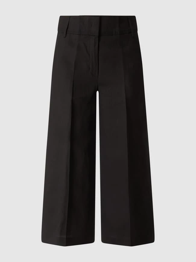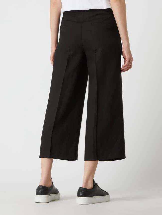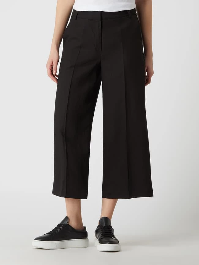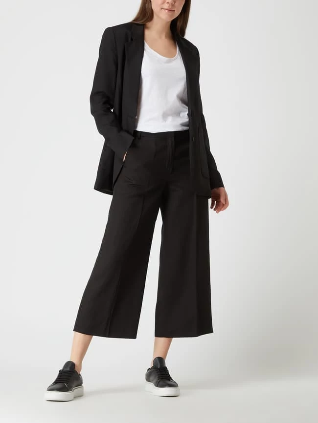 Die Culotte von TAIFUN ist aus einem Lyocell-Leinen-Mix gefertigt und locker geschnitten. Sie zeigt sich in 7/8-Länge mit französischen Eingrifftaschen und Bügelfalten. Warum wir Culottes lieben? Sie betonen schmale Fesseln und kaschieren kräftige Oberschenkel.