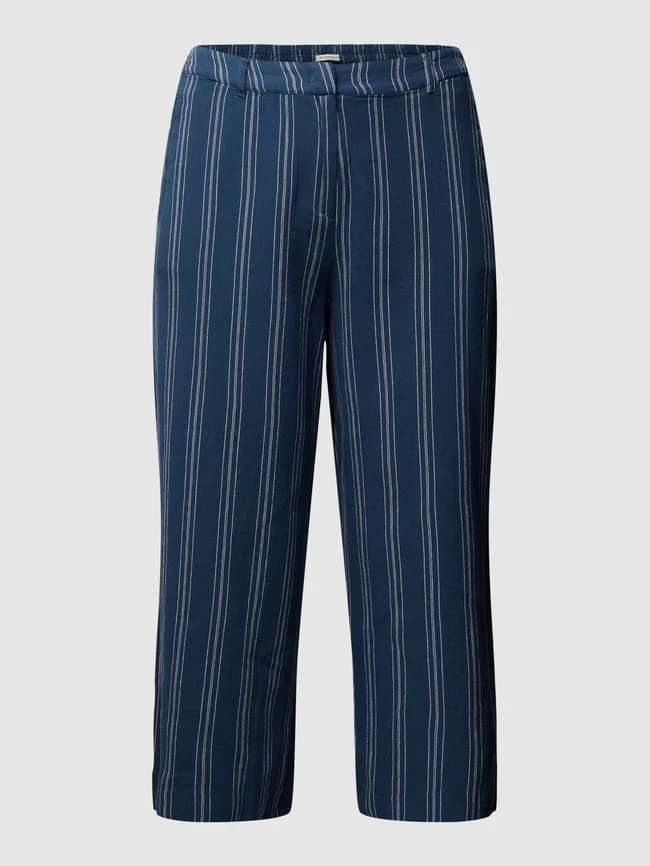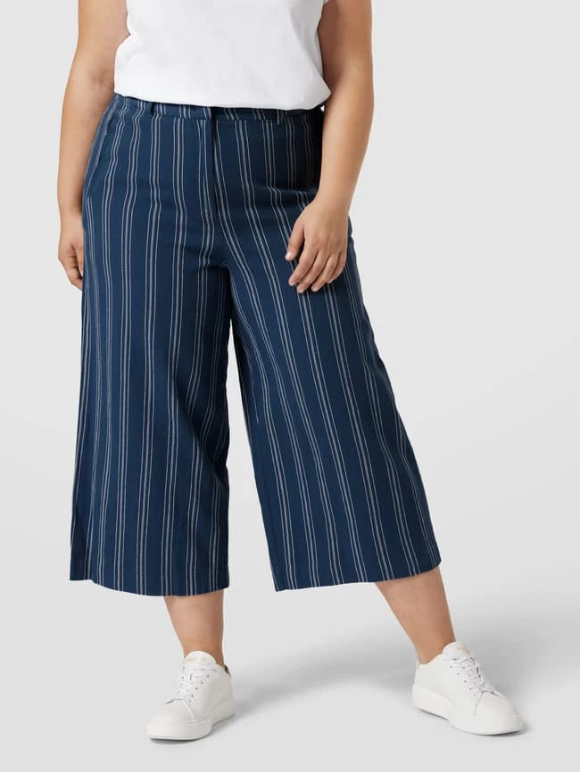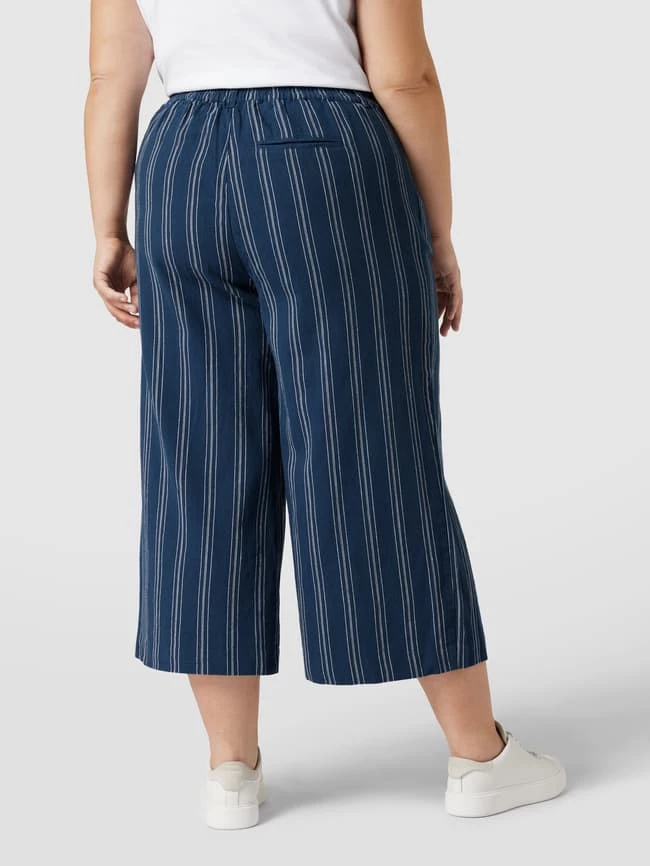 Die Culotte von TOM TAILOR PLUS ist aus einem Baumwoll-Leinen-Mix gefertigt und locker geschnitten. Sie zeigt sich mit Streifenmuster und seitlichen Eingrifftaschen.