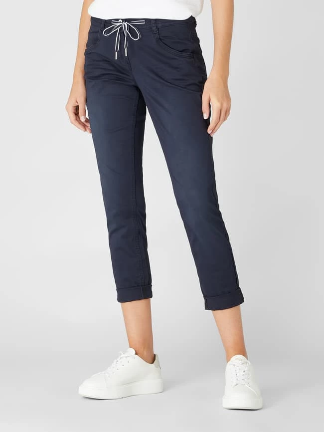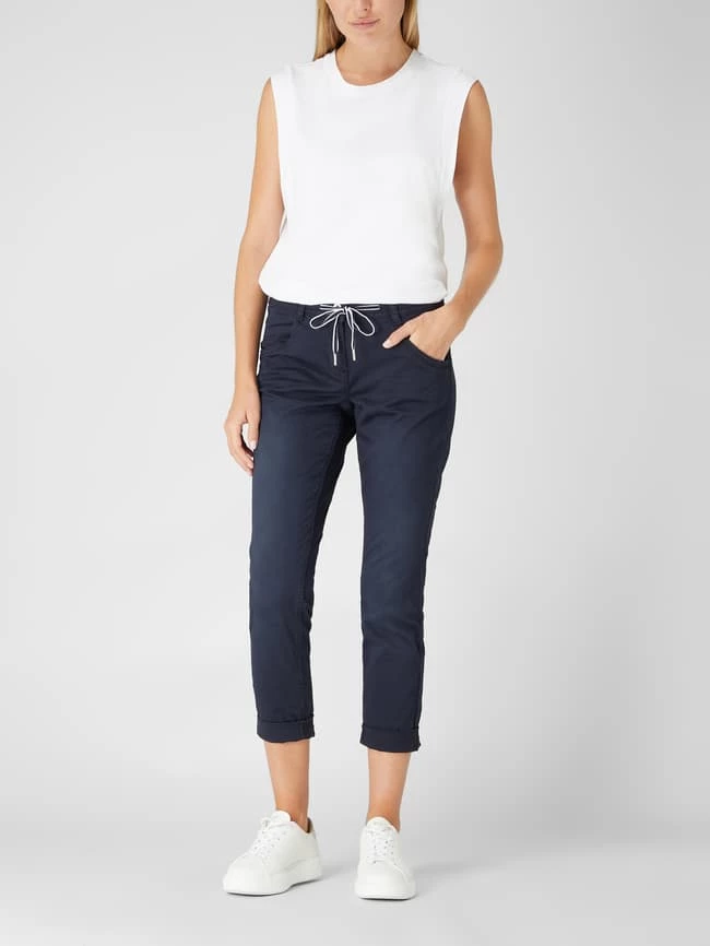 Die Culotte von TOM TAILOR ist aus einem Baumwoll-Elasthan-Mix gefertigt. Sie kommt im Tapered Relaxed Fit mit Tunnelzug am Bund, Eingrifftaschen und fixiertem Umschlag. Warum wir Culottes lieben? Sie betonen schmale Fesseln und kaschieren kräftige Oberschenkel.
