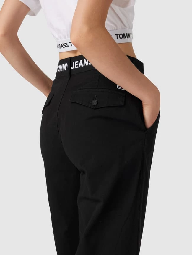 Die Hose von Tommy Jeans ist aus reiner Baumwolle gefertigt und im Relaxed Fit gehalten. Sie zeigt sich im unifarbenen Design mit Logo-Bund, Knopf- und Reißverschluss sowie Pattentaschen mit Knopfverschluss.
