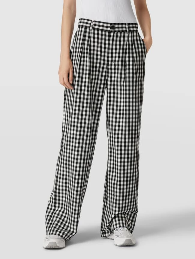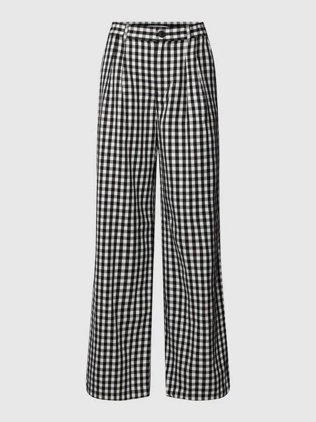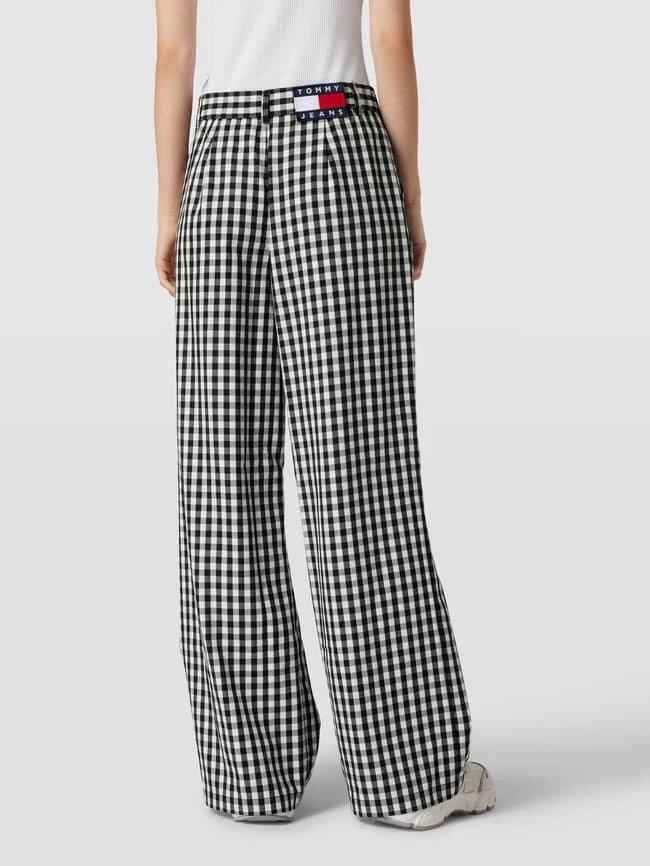 Die Hose von Tommy Jeans ist aus einem Material-Mix mit Viskose-Anteil gefertigt und weit geschnitten. Sie kommt mit Vichy-Karo sowie Knopf- und Reißverschluss.