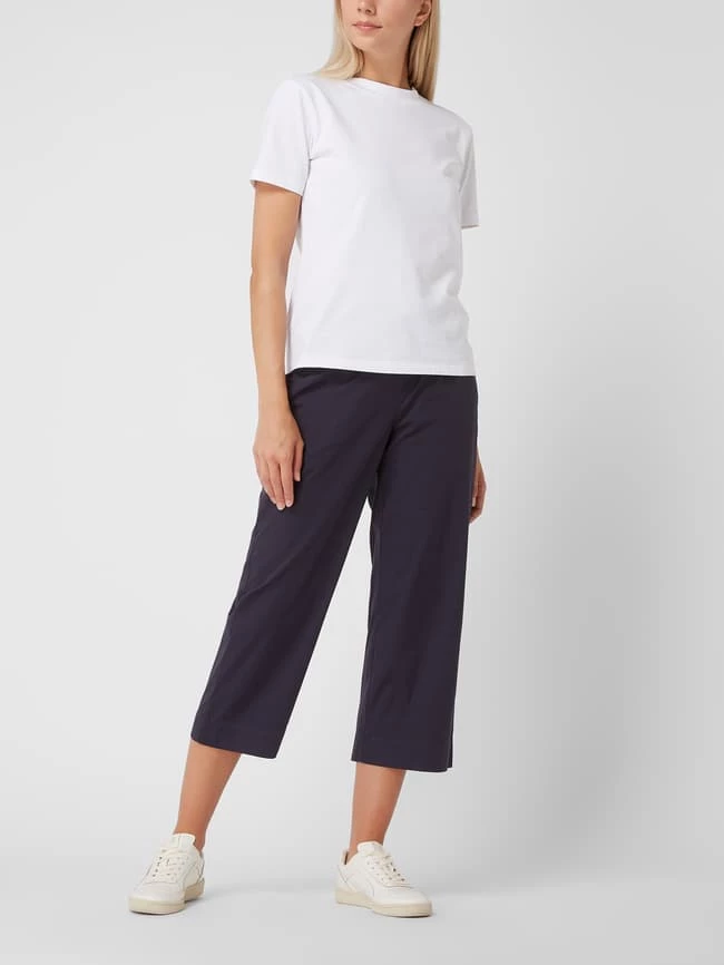 Die Culotte von TONI ist aus einer Baumwollmischung mit Stretch-Anteil gefertigt. Sie kommt in verkürzter Passform mit weitem Bein, elastischem Bund und Eingrifftaschen. Warum wir Culottes lieben? Sie betonen schmale Fesseln und kaschieren kräftige Oberschenkel.