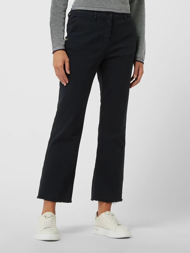 Die Schlaghose von White Sand ist aus einem Baumwoll-Elasthan-Mix gefertigt. Sie kommt mit ausgestelltem Bein, Reißverschluss und Kontrastdetails. Warum wir diese Passform mögen? Sie kaschiert kräftige Waden.